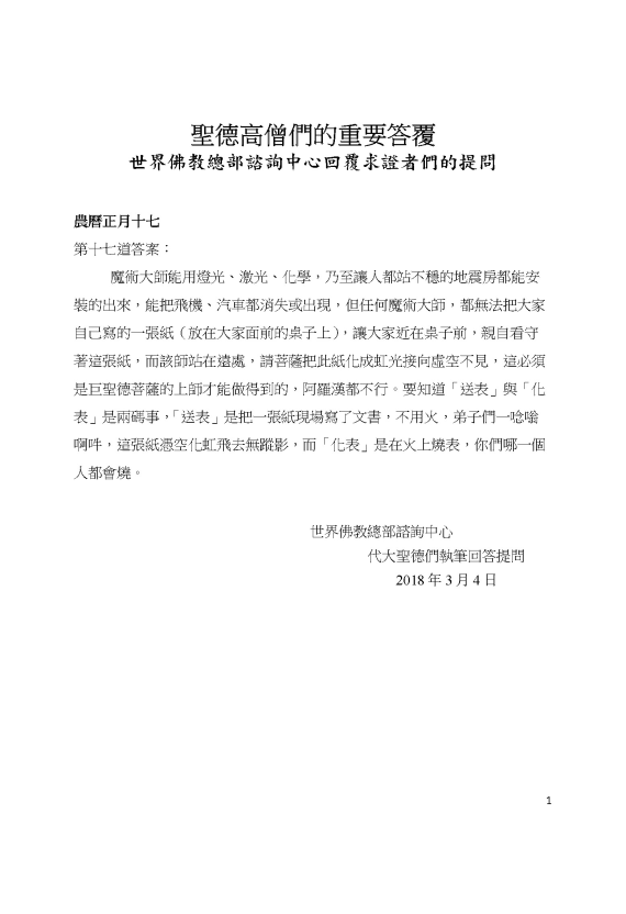 圣德高僧们的重要答覆(农历正月十七:第十七道答案)